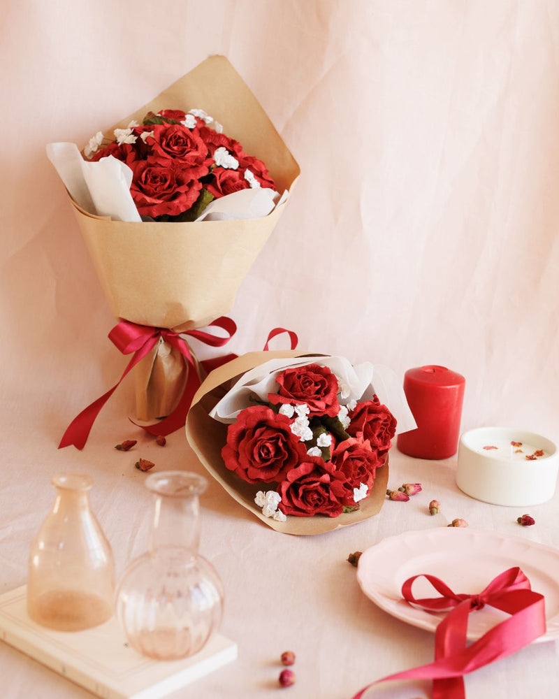Le nostre creazioni onorano Rose rosse, simboli dell'amore eterno. Troverai le nostre rose in bouquet o stelo, carta, artificiale o stabilizzato. Troverai anche delicate composizioni con tonalità morbide e romantiche. Con il nostro servizio di Consegna espressa, puoi sorprendere la tua metà con un bouquet che non svanisce e che rimarrà una memoria indimenticabile.